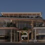The design embraces fluid, organic forms, highlighted by soft curves, full-height glass façades, and warm illuminated edges that create a luxurious and inviting presence both day and night. The building’s exterior composition blends modern minimalism with lush greenery, giving the structure a living, breathing identity.